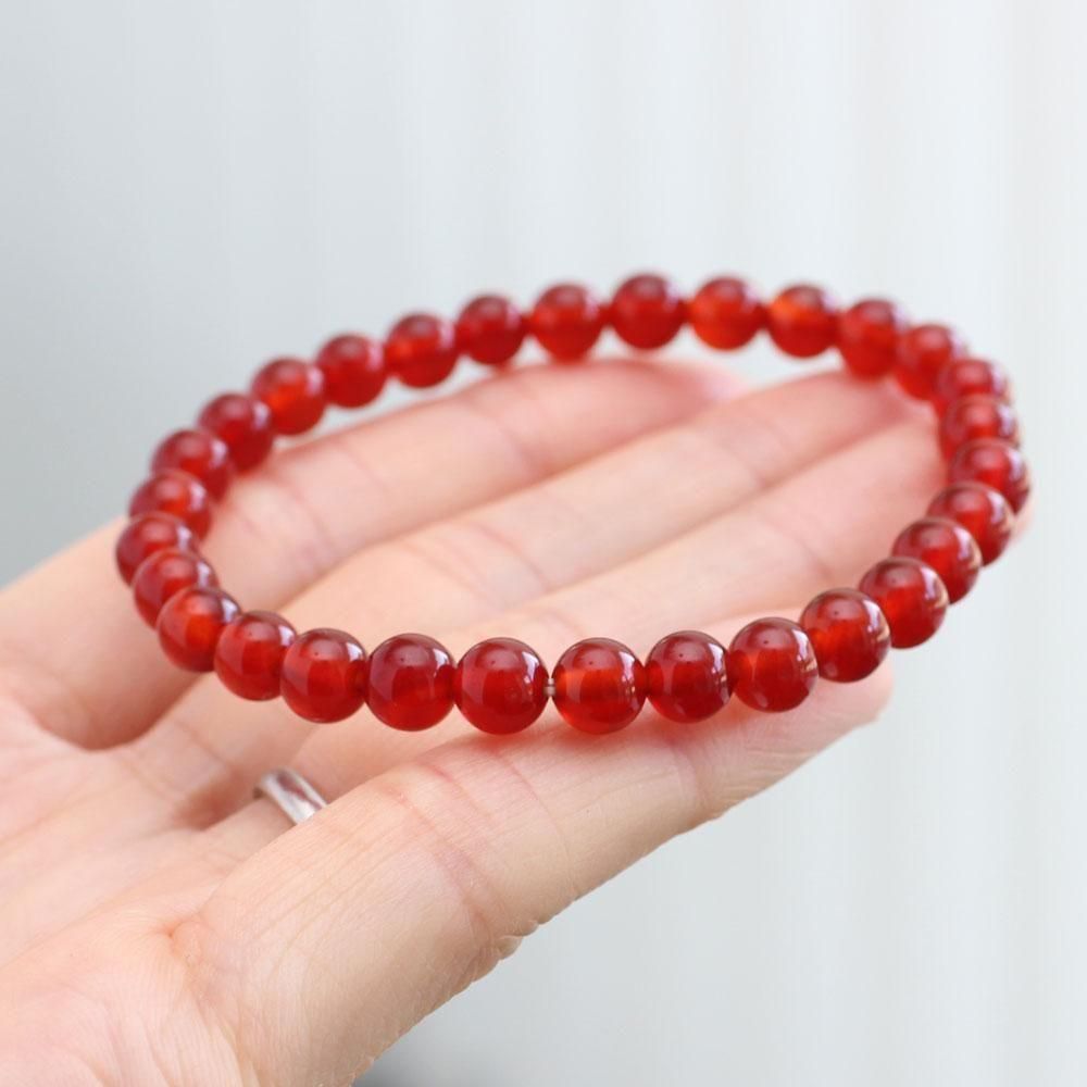 アゲートを使用したブレスレットでございます。深みのある赤色が美しく、年代問わず人気の高い天然石でございます。さりげなく上品にお使い頂ける、約6mmサイズでご用意致しました。