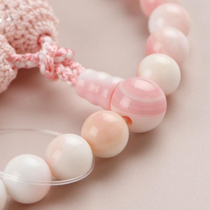 数珠 女性用 約8ミリ ピンクコンクシェル 正絹頭付2色房 2000200403814 略式数珠 京念珠 コンク貝 クイーン クィーン コンクシェル 送料無料