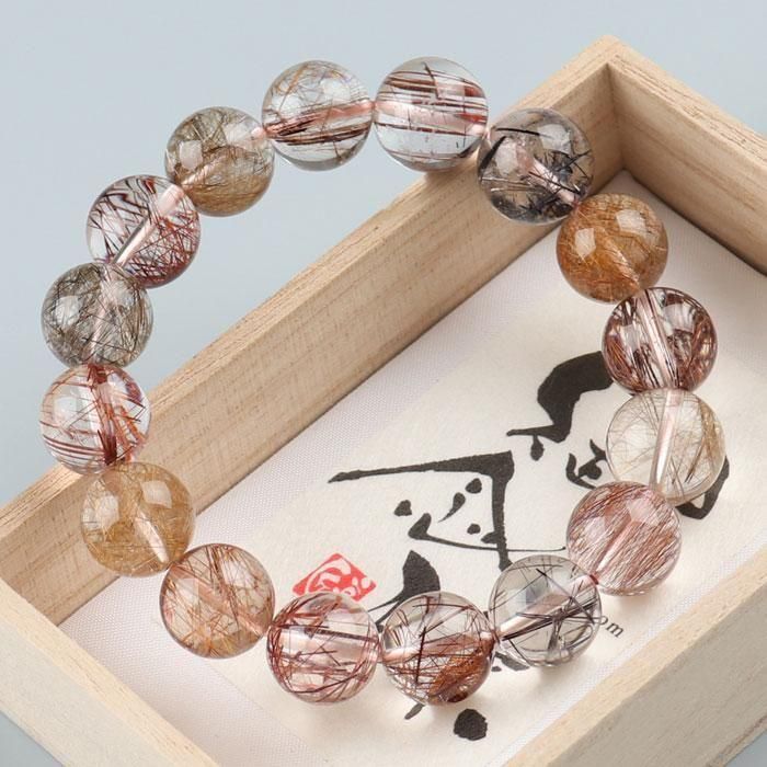 5A ミックスルチルクォーツ ブレスレット 約13mm ストレート 桐箱入り 2000700702042 送料無料