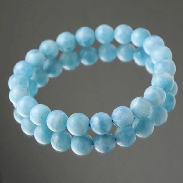 世界3大ヒーリングストーンのひとつであります、ラリマーのブレスレットでございます。カリブ海に浮かぶドミニカ共和国で産出される天然石でございまして、カリブの海を泳ぐイルカ達ともいわれ、「ドルフィンストーン」などと呼ばれることもあります。ラリマー独特の、マーブル模様は非常に綺麗でございまして、ブルーの濃淡をお楽しみいただけます。発色も良く、濃いブルーの色合いが非常に美しい逸品でございます。癒し効果が絶大なラリマー。強力な癒しパワーで心身のバランスを整え、最高のステージへと導いてくれます。大変魅力的なラリマーを、是非ご体感頂きたいです。この他にも、ラリマーのブレスレット、ご準備ございます。