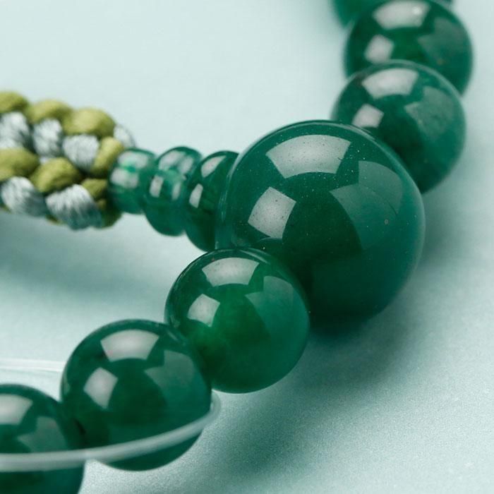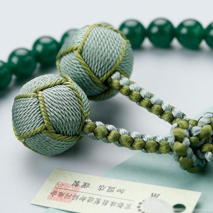 【現品お届け!】【1点モノ】数珠 女性用 約8ミリ 上質 印度翡翠 正絹製・小田巻梵天2色房 2000200403821 略式数珠 京念珠 アベンチュリン 送料無料