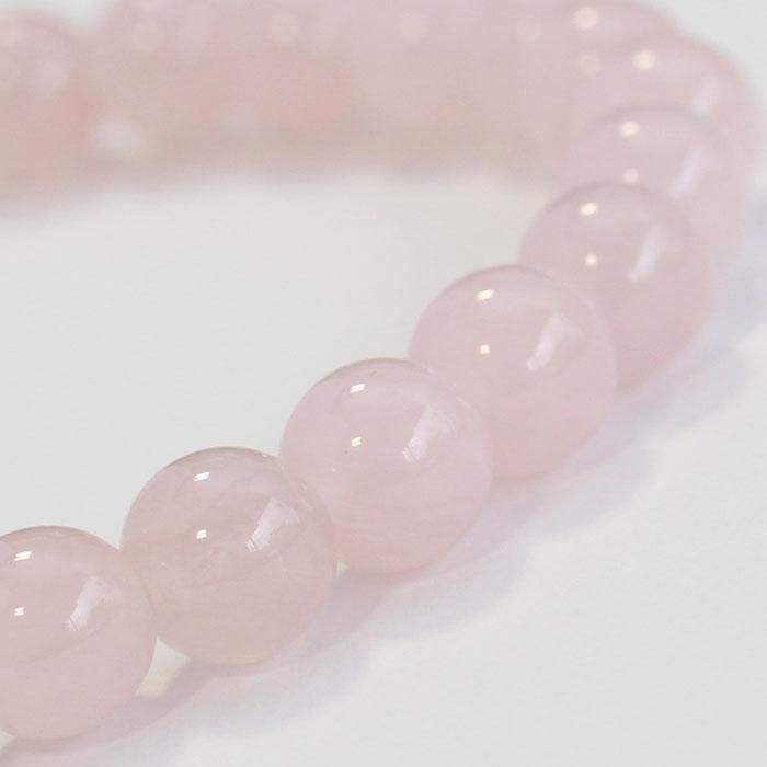 淡く色づいたピンク色が優しい雰囲気を醸し出すローズクォーツのブレスレットでございます。女性に人気のパワーストーンで、玉には上品で艶やかな輝きがあり、美しく魅力的でございます。6mmサイズですので、さりげなくお使い頂けやすく、他のブレスレットとの重ね着けもお洒落でお勧めでございます。この他にも、ローズクォーツのブレスレット、ご準備ございます。