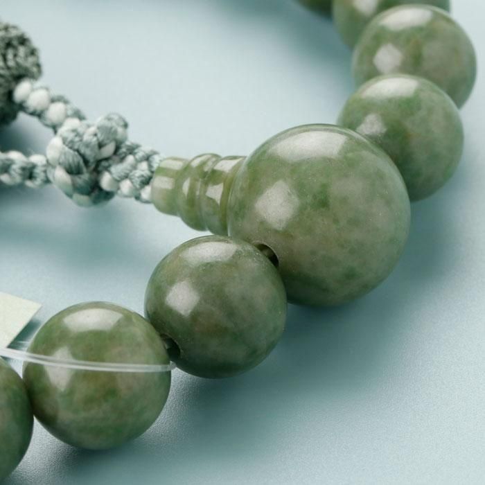 趣きのある緑色が特徴でございます。すべて独山玉のみでお仕立てしたお数珠は、中々ご覧いただけない一品でございます