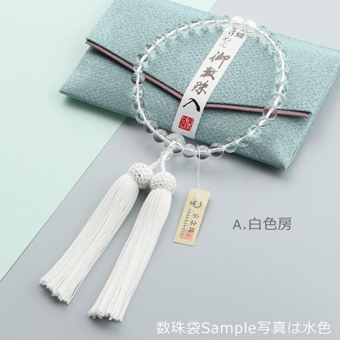お数珠をお持ち歩き頂くときは、素材に傷がつかないように、お数珠袋に入れて頂くことをおすすめしております。ただし、お数珠をお数珠袋に入れたまま保管しますと、房に癖がつきやすくなります。お数珠をご自宅で保管される際には、専用の箱に入れ、房を綺麗に伸ばした状態で保管して頂くか、お数珠掛けにかけていただくことをおすすめします。お数珠も長年ご愛用頂きますと、大切にお使い頂いても、数珠の「中糸」と「房」は痛んでしまいます。「お数珠が切れると縁起が悪い。」とよくおっしゃられますが、そんなことはございません。
