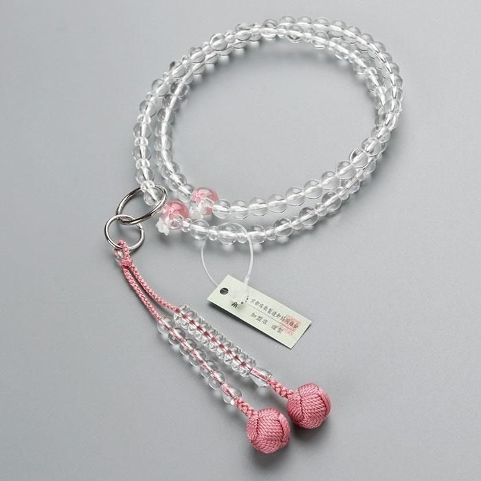 浄土宗、女性用の正式な本式数珠でございます。素材は、透明度が素晴らしい本水晶でございます。親玉の本水晶に可愛い桜彫りが施されております。房は、丈夫で扱い易く、型崩れを起こさない小田巻梵天房を使用させて頂きました。また、浄土宗のお数珠には欠かす事の出来ない銀輪も、店長の強いこだわりで本銀製の銀輪を使用させて頂いております。この他にも、浄土宗・女性用のお数珠、多数ご準備ございます。
